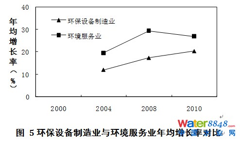 2.環(huán)境服務(wù)業(yè)年均增長率是環(huán)保設(shè)備制造業(yè)的1.3倍