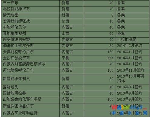 2013年項(xiàng)目審批的提速刺激了煤制氣項(xiàng)目的投資,2013年8月到2014年2月僅僅7個(gè)月內(nèi),就有11家企業(yè)與地方政府簽訂項(xiàng)目投資合同,計(jì)劃項(xiàng)目總產(chǎn)能達(dá)到780億立方米/年。