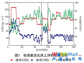 本工作探索性地采用臭氧氧化—包埋菌流化床組合工藝對(duì)煤氣化廢水進(jìn)行深度處理,考察該組合工藝對(duì)COD和氨氮的去除效果,優(yōu)化了工藝條件參數(shù),為后續(xù)的技術(shù)研究與工程應(yīng)用提供必要的基礎(chǔ)性數(shù)據(jù)。