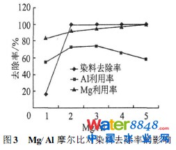2.3 Mg/Al 摩爾比對(duì)染料去除率的影響
