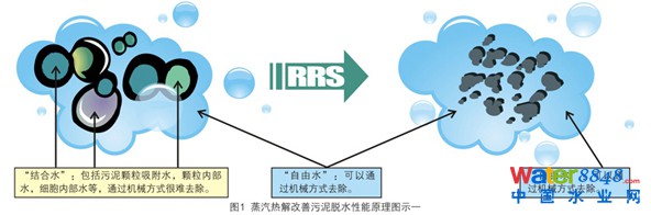 Ω 原理一:通過蒸汽與脫水污泥直接接觸反應(yīng),破壞污泥膠狀絮體、細(xì)胞壁(膜)等持水結(jié)構(gòu),將“結(jié)合水”轉(zhuǎn)化為“自由