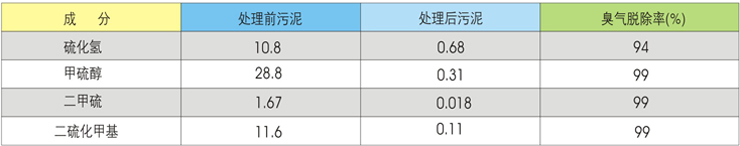 表1 處理前后污泥臭味成分對比 單位:PPM