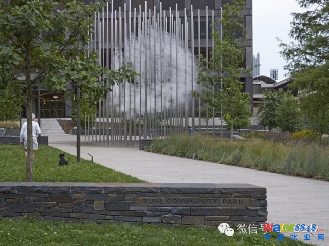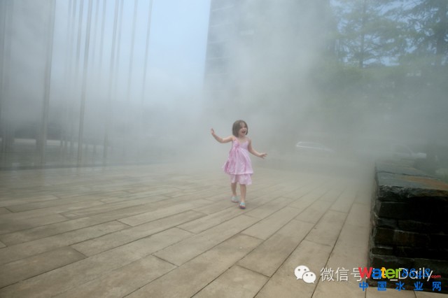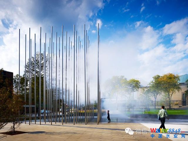 由30英尺高不銹鋼柱列陣組成的“森林”和鋼管高壓噴出水霧行車的誰(shuí)起云, 控制噴霧時(shí)間,形成時(shí)隱時(shí)現(xiàn)的“懸浮云”,有時(shí)為“流云”。實(shí)現(xiàn)自然與藝術(shù)的結(jié)合。