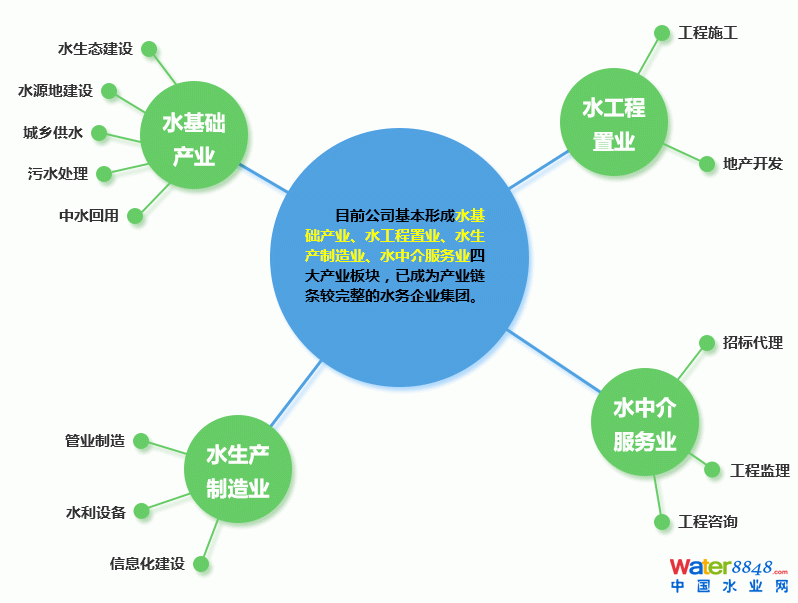 在省水利廳的正確領(lǐng)導(dǎo)下,公司本著“產(chǎn)權(quán)清晰、權(quán)責(zé)明確、政企分開、管理科學(xué)”的要求,梳理管理流程,健全監(jiān)管制度,推動公司步入科學(xué)、快速發(fā)展軌道。短短4年間,公司已發(fā)展為擁有72家控股子公司、2家參股公司、15家分公司、1家研究院,注冊資本18億元、員工近3000人的大型集團公司,基本形成了水基礎(chǔ)產(chǎn)業(yè)、水工程置業(yè)、水生產(chǎn)制造業(yè)、水中介服務(wù)業(yè)四大產(chǎn)業(yè)板塊,涉及水源地建設(shè)、城鄉(xiāng)供水、污水處理、中水回用、工程施工、管業(yè)制造、項目管理、工程咨詢、雨洪資源利用、水利風(fēng)景區(qū)建設(shè)、水利信息化建設(shè)等涉水事務(wù)產(chǎn)業(yè)鏈。