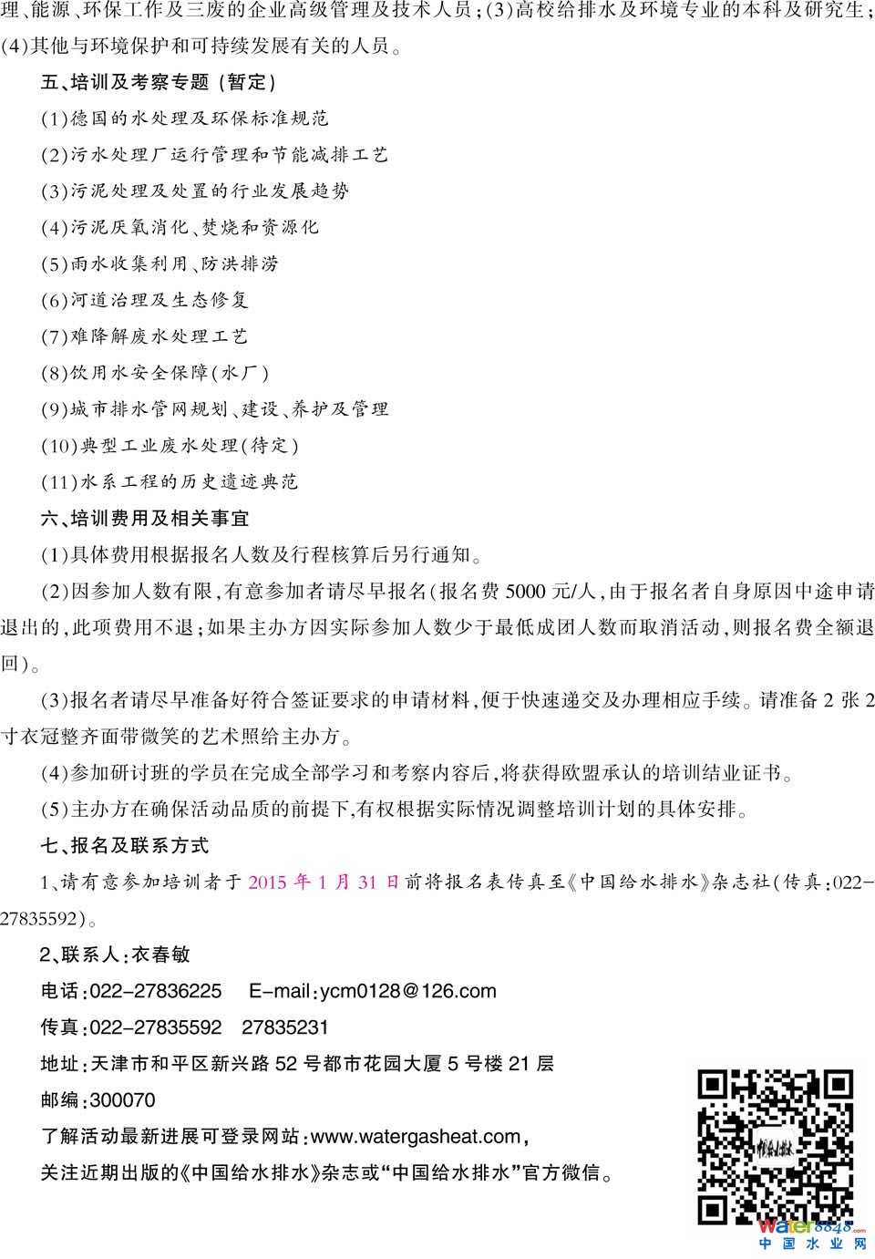 1、 請(qǐng)有意參加培訓(xùn)者于2015年1月31日前將報(bào)名表傳真至《中國(guó)給水排水》雜志社(傳真:022-27835592)。