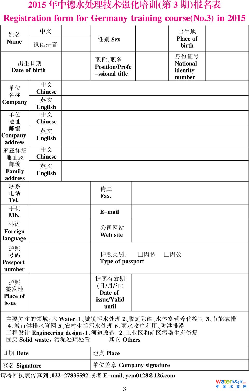 附件:2015年中德水處理技術(shù)強(qiáng)化培訓(xùn)(第3期)報(bào)名表