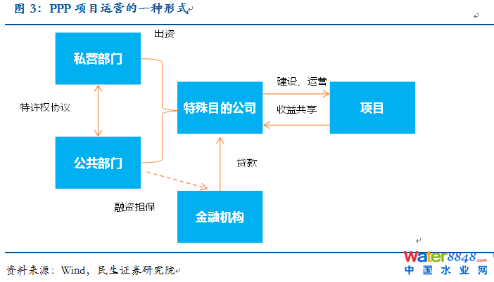 PPP模式(Public-Private-Partnership,即“公共部門-私人企業(yè)-合作”的模式)指的是公共部門通過與私人部門建立伙伴關(guān)系,共同提供公共產(chǎn)品或服務(wù),是20世紀(jì)90年代后出現(xiàn)的一種新的融資模式。 PPP模式的一個典型結(jié)構(gòu)是公共部門與中標(biāo)單位組成的特殊目的公司簽訂特許合同,由特殊目的公司負(fù)責(zé)融資、建設(shè)及經(jīng)營。這種融資形式的實質(zhì)是政府通過給予私營公司長期的特許經(jīng)營權(quán)和收益權(quán)來換取基礎(chǔ)設(shè)施建設(shè),以解決政府的財政困境。 資料圖 三、PPP模式與BOT模式的區(qū)別?