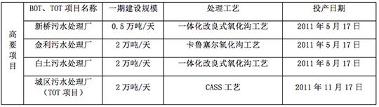 高要市同濟(jì)水務(wù)有限公司于2010年在廣東省肇慶高要市通過(guò)BOT、TOT形式投資運(yùn)營(yíng)了4家污水處理廠,包括了高要城市污水處理廠、金利鎮(zhèn)污水處理廠、白土鎮(zhèn)污水處理廠、新橋鎮(zhèn)污水處理廠。項(xiàng)目總處理規(guī)模為15萬(wàn)噸/天,其中一期處理規(guī)模為6.5萬(wàn)噸/天。目前,4個(gè)污水處理廠已全部通水運(yùn)行,實(shí)現(xiàn)了穩(wěn)定達(dá)標(biāo)排放。