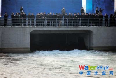 昨日,南水北調(diào)中線一期工程總干渠終點(diǎn)團(tuán)城湖明渠,來(lái)賓見(jiàn)證開(kāi)閘放水,北京市南水北調(diào)工程正式通水。新京報(bào)記者薛珺攝