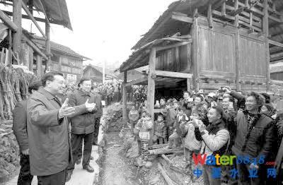 李克強(qiáng)在去年政府工作報告中承諾,全年再解決6000萬農(nóng)村人口飲水安全問題。當(dāng)天,他走進(jìn)貴州黎平縣蒲洞村貧困村民吳龍乾家簡陋的廚房,擰開水龍頭,用水瓢接水細(xì)細(xì)察看水質(zhì)。李克強(qiáng)叮囑有關(guān)負(fù)責(zé)人:“讓山區(qū)群眾喝上安全放心的飲用水,這是政府的硬承諾,絕不能打折扣!”
