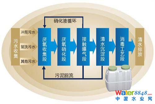 由于農(nóng)村污水排放集中度較差,相關(guān)管網(wǎng)配套設(shè)施較為落后,以往城市地區(qū)的管網(wǎng)+水廠式的污水處置方法并不適用于農(nóng)村,建設(shè)成本較高、來水量不穩(wěn)定且單體來水量小,同時(shí)當(dāng)?shù)卣c居民償付大規(guī)模管網(wǎng)與水廠建設(shè)成本的能力堪憂。因此,通過推廣小型、自動(dòng)化設(shè)備,對(duì)污水進(jìn)行就地解決成為目前較為主流的處置思路。