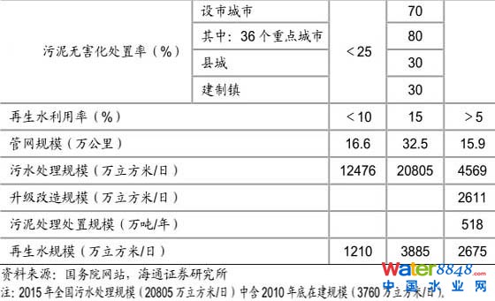 資料來源:《再生水回用的標(biāo)準(zhǔn)比較與技術(shù)經(jīng)濟(jì)分析》 海通證券研究所