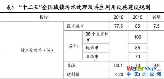 根據(jù)國(guó)家“十二五”規(guī)劃,全國(guó)再生水建設(shè)市場(chǎng)尚有近近491億的市場(chǎng)空間。市政水領(lǐng)域污水處理能力建設(shè)仍有重大缺口,收官之年投資將加速的邏輯同樣適用于再生水市場(chǎng)。假設(shè)0.268億立方米/日的再生水投資進(jìn)度與市政污水處理廠相同,按照目前市政再生水廠的建設(shè)成本(2500-3500元/m3)計(jì)算,全國(guó)再生水建設(shè)尚有491億元的市場(chǎng)空間。
