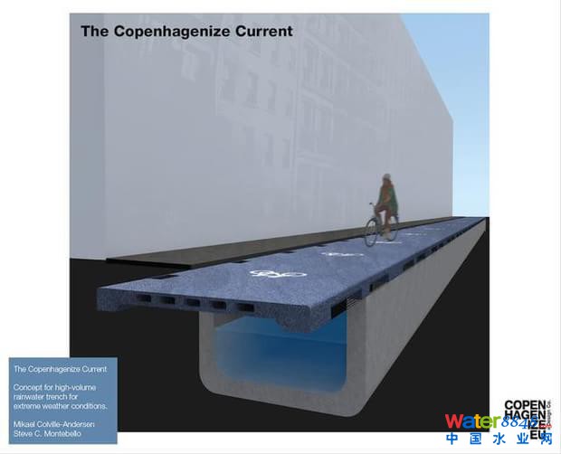 哥本哈根Current系統(tǒng)簡單地說,哥本哈根化包括了以下內(nèi)容:在現(xiàn)有自行車道下挖一條溝渠,以預(yù)制混凝土做出一長條儲水空間,最后上蓋以預(yù)制混凝土板,用的是最基本的明挖工法。對那些沒有足夠空間布置中間隔離綠化帶的街道,可以挖這樣一個儲水空間。作為一個高效、大容量的系統(tǒng)工程,這樣的設(shè)施可以加快街道排水,減小暴雨對低洼敏感區(qū)域的影響。Copenhagenize Design公司的建筑師Steve Montebello就從事這項設(shè)計和計算。哥本哈根Current系統(tǒng)的設(shè)計初衷是讓大量的排水通過城市排水脆弱的街區(qū)。哥本哈根市和腓特烈斯貝市已就疏浚Saint J?rgen's湖并引暴雨入湖展開磋商,哥本哈根Current系統(tǒng)在這其中扮演了臨時儲水的角色。