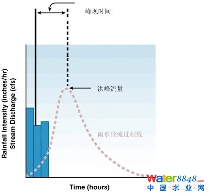 圖3 自然狀況下的降雨徑流過(guò)程線 (Modified from Hydrology & Hydraulics )