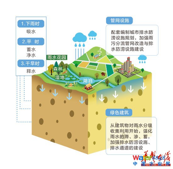 海綿城市就是將城市河流、湖泊、地下水系統(tǒng)的污染防治與生態(tài)修復(fù)結(jié)合起來,讓城市像海綿一樣,遇到降雨時,能夠就地或者就近吸收、存蓄、滲透、凈化雨水、補(bǔ)充地下水、調(diào)節(jié)水循環(huán);干旱的時候再把吸收的水“吐”出來,并加以利用,從而讓水在城市中的遷移活動更加“自然”的城市。