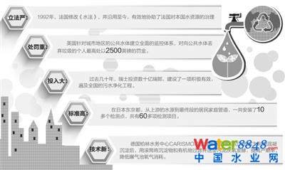 在輿論的壓力下,日本政府不得不下決心解決企業(yè)排污造成的水污染問(wèn)題。日本首先從立法開(kāi)始,短短幾年,先后通過(guò)了諸如《控制工業(yè)排水法》、《水質(zhì)污染防治法》、《湖泊水質(zhì)保全特別措施法》等法律,后來(lái),日本又根據(jù)情況變化多次修改《水質(zhì)污染防治法》。這樣,日本主管部門和法律部門就可以依據(jù)這些法律監(jiān)督和管理水資源,并調(diào)查和追究污染水質(zhì)的責(zé)任方。