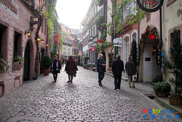 說佛萊堡是一座古城是一點都不會錯,來到這里第一感覺就是古色古香。街道是用鵝卵石鋪成的,在弗萊堡你看不到高樓大廈、看不到立交橋、地鐵等大城市該有的設(shè)施。這里只有有軌電車在大街上慢慢的行駛,沒有人在這里急匆匆的行走,這個小城好像不是處于現(xiàn)在的一個全球科技的時代。弗萊堡最讓人驚喜的是這里的街巷的水渠,水渠遍布城中的大街小巷。流的可是從黑森林里流出來的清澈泉水。德哈以薩姆河流過弗萊堡的郊外,到這里來漫步看看河岸的風(fēng)景,也是很不錯的,這里的水果種植茂盛,桃樹、李子樹等遍地都是。這里的草地更是綠油油的一大片,很多游客喜歡在這里曬曬太陽,因為這里就是陽光明媚的溫暖小城。