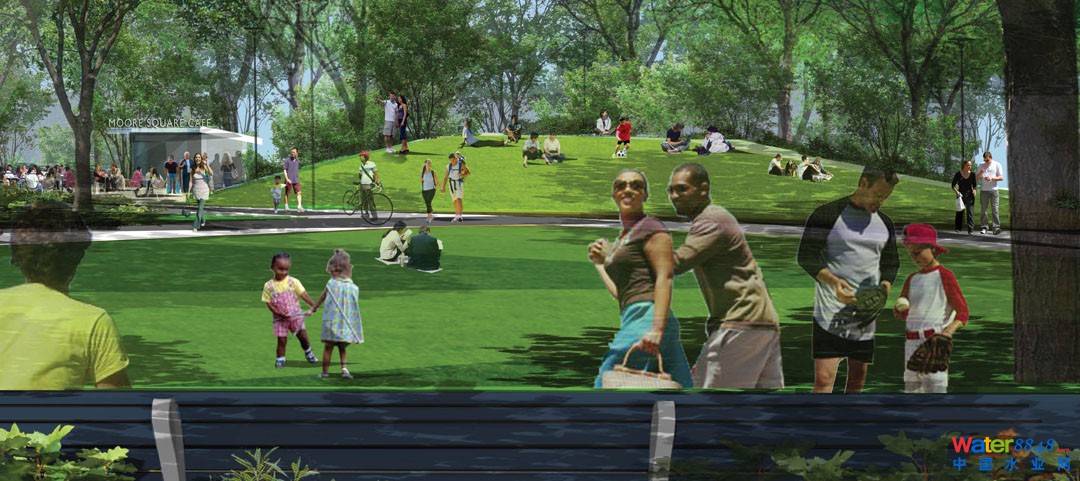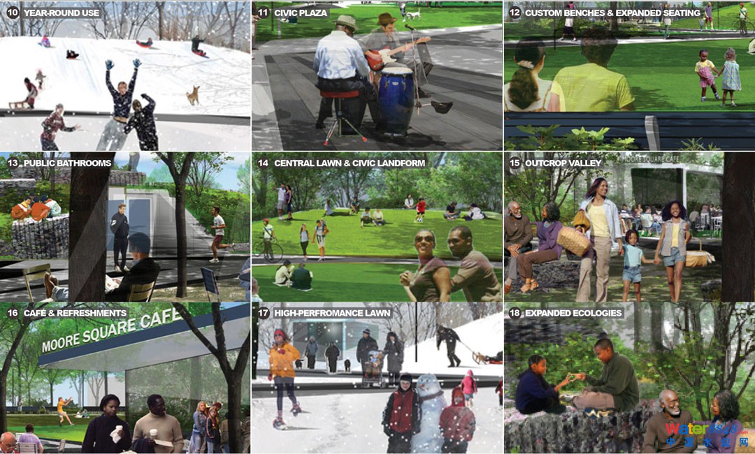 栽種本地植物豐富棲息地。這些元素使摩爾廣場綠色基礎(chǔ)設(shè)施和可持續(xù)設(shè)計成為的重點示范項目。保護性建設(shè)技術(shù)