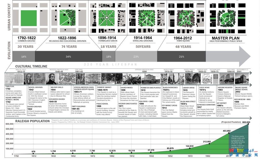 北卡羅萊納州立歷史保護辦公室,30多個城市和州機構(gòu)合作和設(shè)計團隊展開了廣泛的談話。對廣場大量的分析和規(guī)