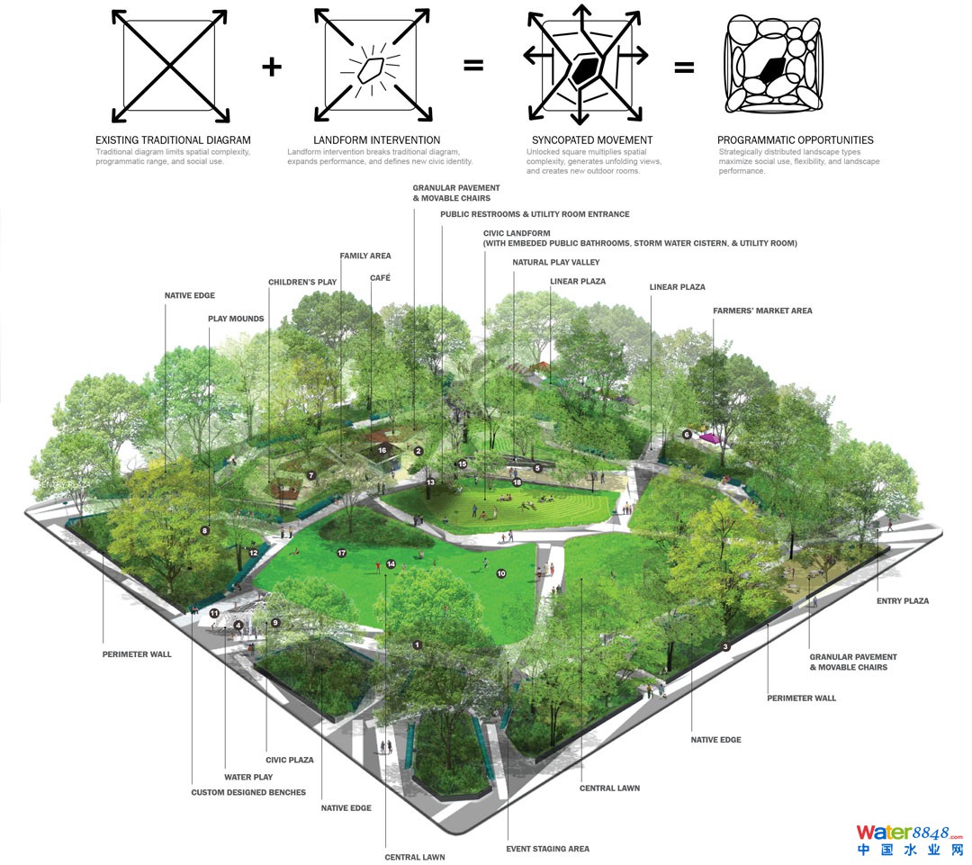 能拓展到最大化,在這塊4英畝的廣場上,人們將有更多的娛樂選擇和體驗,這樣的戶外環(huán)境將占地面積和多功能