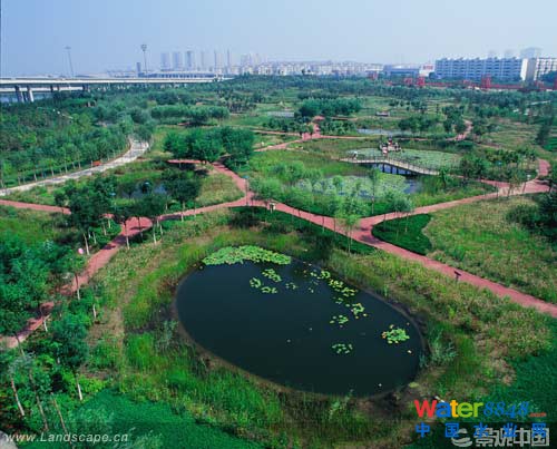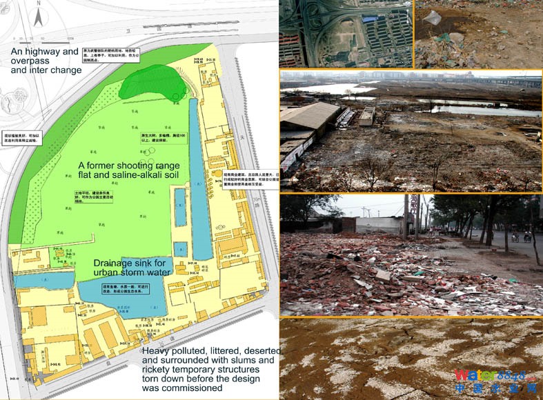這是一個在天津的公園,場地被城市快速路包圍,是一塊垃圾遍布,收到污染,被人遺忘的區(qū)域,并且有相當嚴重的鹽堿地問題。2003年,天津市政府打算改造這里,并將這個艱巨的任務(wù)交到了景觀設(shè)計師手中。