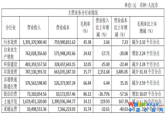 ①水務(wù)固廢等環(huán)保業(yè)務(wù):實現(xiàn)營業(yè)收入348,062.32萬元,為公司營業(yè)總收入的62.27%。公司通過積極拓展市場,新收購的水務(wù)項目運營及首創(chuàng)環(huán)境固廢收入增加是收入增長的主要原因。