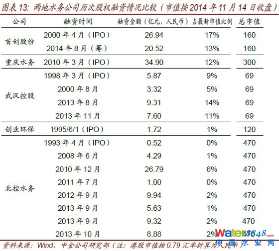 上文第一部分已經(jīng)展示了A股和港股融資的一個重大區(qū)別,上市之后,不完全統(tǒng)計北控已經(jīng)進行了多次融資,累計在市場上融了65億人民幣,而且?guī)缀跏堑搅穗S治隨走的地步,帶動營收穩(wěn)步提升坐上行業(yè)第一的位置(詳見下篇)…而首創(chuàng)股份發(fā)力之后的融資是一波就干20億,量足管飽,但是制度上的問題流程真心慢,13年提案到14年才過審...