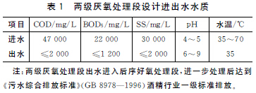 常溫發(fā)酵因其COD去除率低、產(chǎn)氣量少、消化時(shí)間長、容積負(fù)荷低而很少用于大規(guī)模工業(yè)生產(chǎn),故采用高溫+中溫兩級厭氧消化工藝處理天冠企業(yè)酒精生產(chǎn)中高濃度有機(jī)廢水。