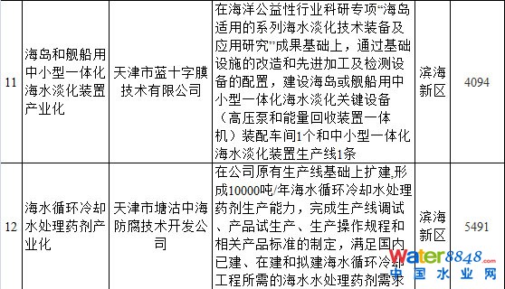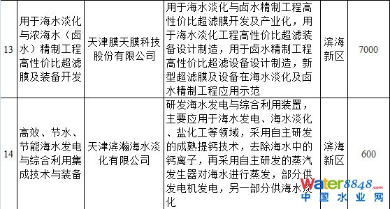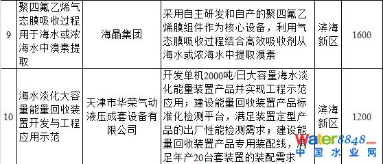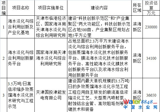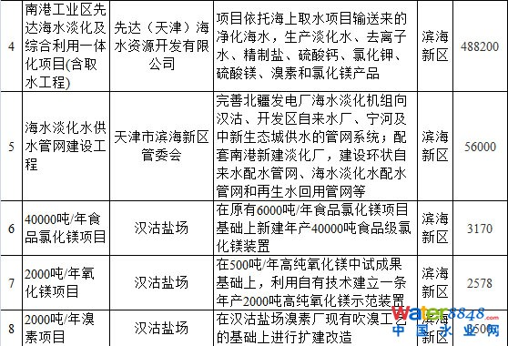 天津市海水資源綜合利用循環(huán)經(jīng)濟重點建設項目表
