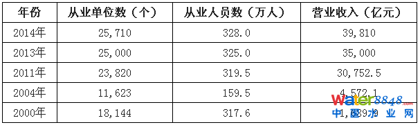 根據(jù)環(huán)保部等三部委的聯(lián)合調(diào)查,2011年,全國(guó)環(huán)保行業(yè)從業(yè)單位23,820個(gè),從業(yè)人員319.5萬(wàn)人,年?duì)I業(yè)收入30,752.5億元,年?duì)I業(yè)利潤(rùn)2,777.2億元,與2000年相比,除從業(yè)人員數(shù)量基本持平外,其它三項(xiàng)指標(biāo)則分別增長(zhǎng)了0.31倍,17.2倍和15.7倍,產(chǎn)業(yè)總體規(guī)模顯著擴(kuò)大。
