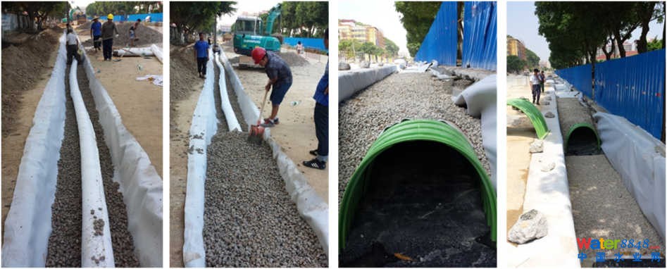 (3)雨水調蓄儲存:位于下沉式綠地以下,不占用上部土地空間,路面及綠化雨水均進入調蓄系統(tǒng)。