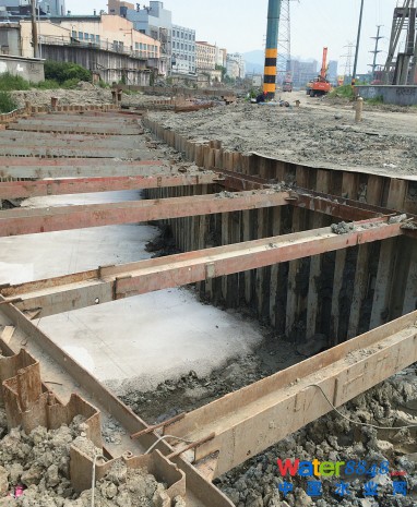 站在溫州大道與文昌路交叉口,向北望,可以看到一大片仍是塵土飛揚(yáng)的工地。工地四周筑起了矮墻,行人與車輛只能借道西側(cè)的小路緩慢通過。剛一進(jìn)入工地,記者便看到路面上挖開了一個(gè)長約100米,寬約3米,約有3米深的大口子,里面被隔成了幾塊空間,上面等距離橫向排列著一條條水泥鋼筋結(jié)構(gòu)支撐架。