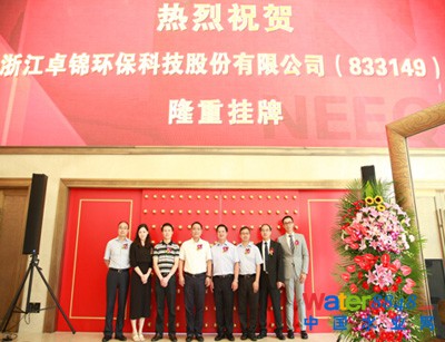 2015年8月11日,浙江卓錦環(huán)?萍脊煞萦邢薰荆ㄗC券簡稱:卓錦環(huán)保;證券代碼:833149),成功在全國中小企業(yè)股份轉(zhuǎn)讓系統(tǒng)有限責(zé)任公司舉行掛牌儀式。