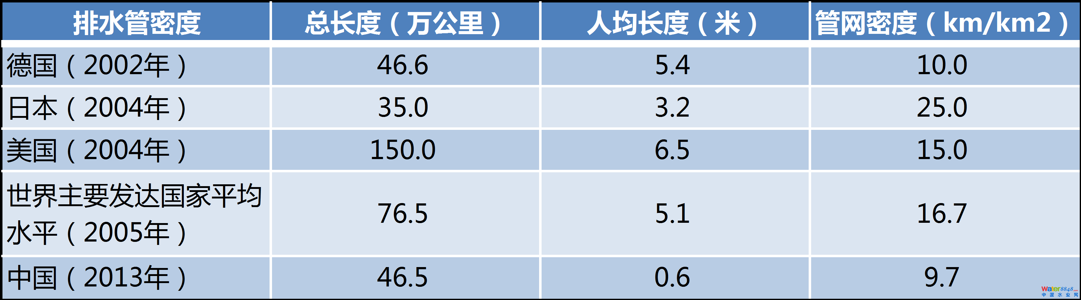 圖表 4 世界主要國家城市排水管網(wǎng)對比