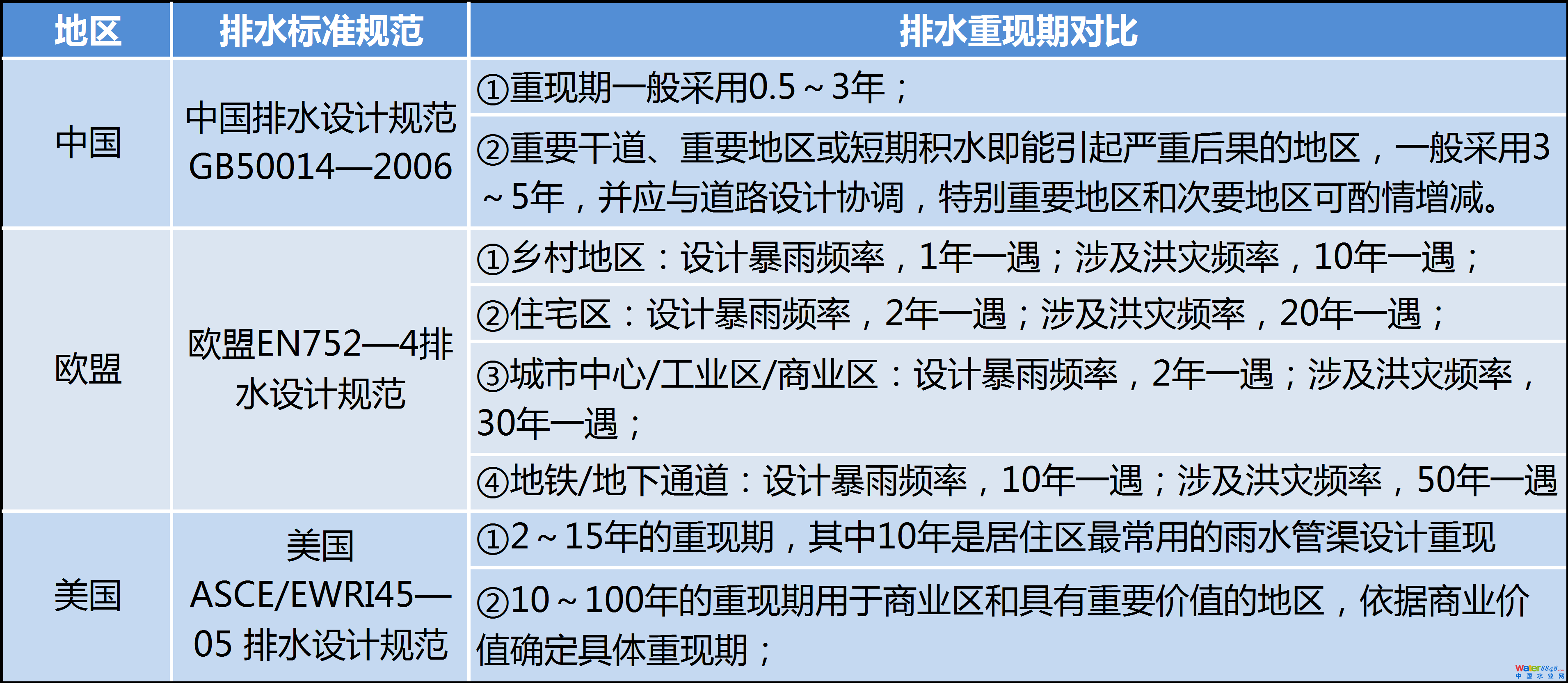 數(shù)據(jù)來源:《國內(nèi)外城市排水設(shè)計規(guī)范比較研究》(2012)、MRI
