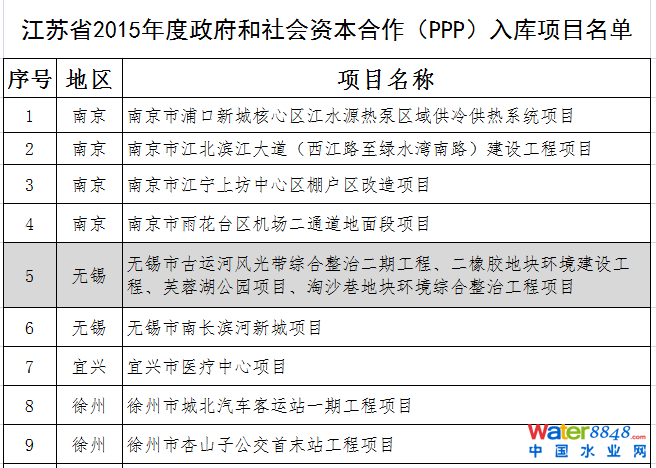 2015年江蘇省PPP試點(diǎn)項(xiàng)目和入庫項(xiàng)目 含環(huán)保項(xiàng)目(全名單)