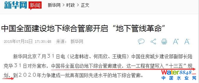 國務院部署城市地下綜合管廊建設打造經濟發(fā)展新動力: