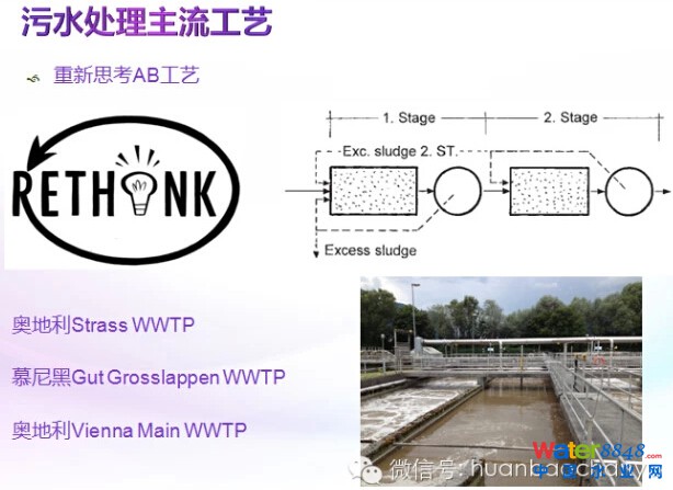 這里需要提一下AB工藝,AB工藝是德國(guó)人在70年代發(fā)明的,具有投資省、節(jié)能的優(yōu)點(diǎn),后來(lái)90年代由于氮磷排放標(biāo)準(zhǔn)嚴(yán)格,這種工藝失去了競(jìng)爭(zhēng)力,隨著一些新型技術(shù)的出現(xiàn),這種工藝現(xiàn)在又引起了人們的重新思考。