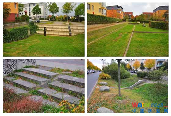 由于當(dāng)?shù)氐叵滤惠^高,kronsberg城區(qū)是漢諾威重要的地下水儲存地,這也是漢諾威政府一直遲遲沒有在kronsberg城區(qū)進行建設(shè)的原因之一。該項目提出了“近自然的水管理”概念和方法,目標(biāo)是通過一些接近自然的排水方式盡可能的將雨水就地滯留并下滲,最大可能的減少流失量,讓城區(qū)的雨水流失量和地下水保持在未開發(fā)前的狀態(tài)。