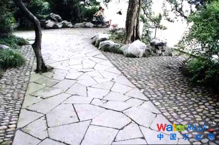 因景觀和功能要求,在主要道路和廣場上未使用透水磚。因道路廣場的標(biāo)高大于綠地標(biāo),道路廣場上的雨水可以匯聚到周邊綠地內(nèi),再滲透到地下。而園內(nèi)一般道路采用透水磚,并以級配砂石作為墊層,在級配砂石墊層內(nèi)鋪設(shè)全透型排水軟管,便于雨水滲透、收集和利用。