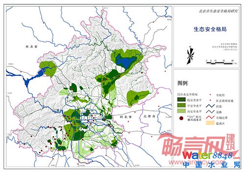 4、 “海綿城市”旨在綜合解決城市生態(tài)問題 水生態(tài)系統(tǒng)區(qū)別于其他生態(tài)系統(tǒng)的主要特點(diǎn)之一在于水這一特殊的環(huán)境因子。由于水是流動(dòng)和循環(huán)的特點(diǎn),因此水生態(tài)系統(tǒng)的影響因素并不在于水體本身,它與流域內(nèi)其他土地利用等景觀要素相聯(lián)系,自然過程和人類活動(dòng)對(duì)水生態(tài)系統(tǒng)的影響是廣泛的,它可以通過其他土地利用方式間接影響。由于系統(tǒng)不能認(rèn)識(shí)系統(tǒng)本身以及生態(tài)系統(tǒng)的開放性,就水而論水容易形成認(rèn)知障礙,應(yīng)從更高一個(gè)層次研究水體,將視野從水體擴(kuò)大到匯水區(qū)域(對(duì)靜水水體而言)或流域(對(duì)流水水體而言)以及景觀尺度。即充分認(rèn)識(shí)到水域、水體本身不僅僅是為水生態(tài)系統(tǒng)服務(wù),而是為整個(gè)生態(tài)系統(tǒng)提供了多種重要且無可替代的服務(wù)。例如,水域本身不僅為水生生物提供了生境系統(tǒng),也為其他需水生物提供了不可替代的棲息環(huán)境,佛蒙特州的森林資源調(diào)查表明,90%的鳥類的棲息地在距河岸150~170m的范圍內(nèi);人類也喜好棲水而居,因此而形成了龐大的以水為核心的文化遺產(chǎn)。所以,從水問題出發(fā),以構(gòu)建跨尺度水生態(tài)基礎(chǔ)設(shè)施為核心的“海綿城市”,最終能綜合解決城市生態(tài)問題,包括區(qū)域性的城市防洪體系構(gòu)建、生物多樣性保護(hù)和棲息地恢復(fù)、文化遺產(chǎn)網(wǎng)絡(luò)和游憩網(wǎng)絡(luò)構(gòu)建等,也包括局域性的雨洪管理、水質(zhì)凈化、地下水補(bǔ)充、棕地修復(fù)、生物棲息地的營(yíng)造、公園綠地營(yíng)造,以及城市微氣候調(diào)節(jié)等等。 5、 “海綿城市”是古今中外多種技術(shù)的集成 “海綿城市”的提出有其深厚的理論基礎(chǔ),又是一系列具體雨洪管理技術(shù)的集成和提煉,是大量實(shí)踐經(jīng)驗(yàn)的總結(jié)和歸納。我認(rèn)為,可以納入到“海綿城市”體系下的技術(shù)應(yīng)該包括以下三類:第一,讓自然做工的生態(tài)設(shè)計(jì)技術(shù)。自然生態(tài)系統(tǒng)生生不息,不知疲倦,為維持人類生存和滿足其需要提供各種條件和過程,生態(tài)設(shè)計(jì)就是要讓自然做工,強(qiáng)調(diào)人與自然過程的共生和合作關(guān)系,從更深層的意義上說,生態(tài)設(shè)計(jì)是一種最大限度的借助于自然力的最少設(shè)計(jì)55。任何技術(shù)的使用要尊重自然,而不是依賴工程措施不惜代價(jià)的以“改變場(chǎng)地原本穩(wěn)定生態(tài)環(huán)境”為代價(jià)來實(shí)施“生態(tài)建設(shè)”。第二, 中國(guó)古代水適應(yīng)技遺產(chǎn)。先民在長(zhǎng)期的水資源管理及與旱澇災(zāi)害斗爭(zhēng)的過程中,積累了大量具有樸素生態(tài)價(jià)值的經(jīng)驗(yàn)和智慧,增強(qiáng)了人類適應(yīng)水環(huán)境的能力。在城市和區(qū)域尺度,古代城鄉(xiāng)聚落適應(yīng)水環(huán)境方面的已有研究散見于聚落地理方面的研究。在城市規(guī)劃界,吳慶洲等人作了大量卓有成效的研究。水利方面的相關(guān)遺產(chǎn)也非常豐富。俞孔堅(jiān)等研究了黃泛平原古代城市的主要防洪治澇的適應(yīng)性景觀遺產(chǎn),并總結(jié)出了“城包水”“水包城”和“陰陽城”等水適應(yīng)性城市形態(tài),飽含著古人應(yīng)對(duì)洪澇災(zāi)害的生存經(jīng)驗(yàn),對(duì)今天的城市水系治理、防洪治澇規(guī)劃以及土地利用規(guī)劃等仍大有裨益。同時(shí),古代人民還創(chuàng)造了豐富的水利技術(shù),例如我國(guó)有著2500年的陂塘系統(tǒng),它同時(shí)提供水文調(diào)節(jié)、生態(tài)凈化、水土保持、生物多樣性保護(hù)、生產(chǎn)等多種生態(tài)系統(tǒng)服務(wù)。目前學(xué)術(shù)界對(duì)這些傳統(tǒng)技術(shù)的整理歸納和應(yīng)用還非常不夠。第三,當(dāng)代西方雨洪管理的先進(jìn)技術(shù),包括LID技術(shù)、水敏感城市設(shè)計(jì)等,相關(guān)研究成為近年來城市水問題研究的熱點(diǎn),在此不再贅述。 三、海綿城市多尺度構(gòu)建方法及實(shí)踐 1、宏觀——綜合水安全格局,案例:北京 在過去30年中,伴隨人口的增長(zhǎng)北京城區(qū)面積已經(jīng)拓展了700%。蔓延式、攤大餅式的城市擴(kuò)展使得城市沒有為生物和水預(yù)留科學(xué)合理的空間,彈性的生態(tài)網(wǎng)絡(luò)缺失。也因此導(dǎo)致一系列的生態(tài)環(huán)境問題,如雨澇頻繁與河流湖泊干涸并存;公園綠地與區(qū)域水系統(tǒng)割裂,導(dǎo)致雨澇時(shí),公園的雨水排往城市雨水管道,浪費(fèi)了雨水資源,也增加了市政排水系統(tǒng)的壓力,而干旱時(shí),綠地又需要澆灌,與城市用水競(jìng)爭(zhēng);非生態(tài)化的河道建設(shè)方式不但沒有使其成為日常通勤和游憩通道,反而成為市民活動(dòng)的障礙。因此,如何留住雨水并回補(bǔ)地下水,如何將這些留在地表的水與生物保護(hù)相結(jié)合,如何與文化遺產(chǎn)相結(jié)合,如何與游憩系統(tǒng)、慢行系統(tǒng)相結(jié)合,均是急需通過水生態(tài)基礎(chǔ)設(shè)施的構(gòu)建系統(tǒng)地解決的城市生態(tài)問題。 本案例從北京市水系的空間格局與水生態(tài