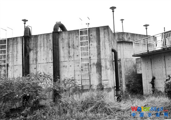 由于長期未用,污水處理廠的部分設(shè)施已經(jīng)損壞,污水池里也積滿了雨水。
