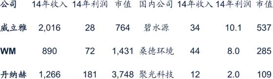 國際環(huán)保巨頭與國內(nèi)環(huán)保公司比較(億元人民幣)