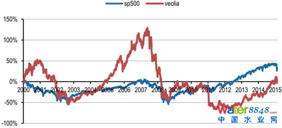 威立雅(CGE)成立于1853年,最初為里昂供水;后獲得巴黎50年供水的特許經(jīng)營權(quán);之后主營固廢清理的FrançoisGrandjouan、Soulierbrothers和CEGA及主營供暖、空調(diào)系統(tǒng)運(yùn)行的ChauffageService先后并入CGE;1975年CGE創(chuàng)立SARP進(jìn)行危險廢物回收;1990年收購歐洲最大的廢紙、塑料循環(huán)利用商之一GroupeSoulier;1997年取得在華第一份水務(wù)合同天津凌莊水廠;1998年收購西班牙第二大的水處理公司FCC49%的股權(quán);2000年巴黎證交所上市;2001年紐交所上市;2002年收購上海浦東自來水公司50%股權(quán);2014年收購拉美proactive100%的股份。威立雅通過持續(xù)不斷的并購形成水務(wù)、環(huán)境服務(wù)(固廢)、能源及運(yùn)輸四大業(yè)務(wù)板塊,成為領(lǐng)先的全球環(huán)境管理綜合服務(wù)提供商。威立雅在00-07年間股價取得不錯的超額收益。