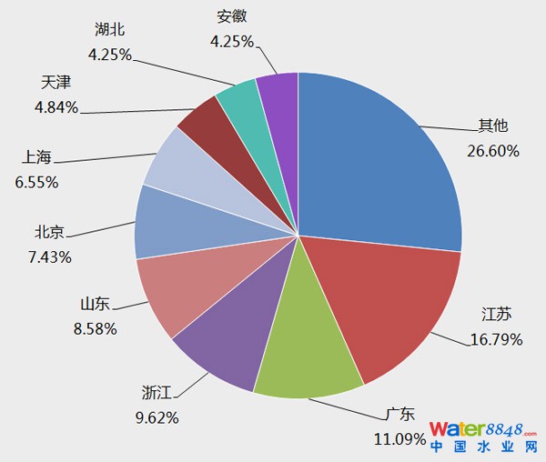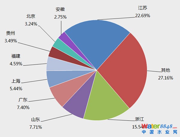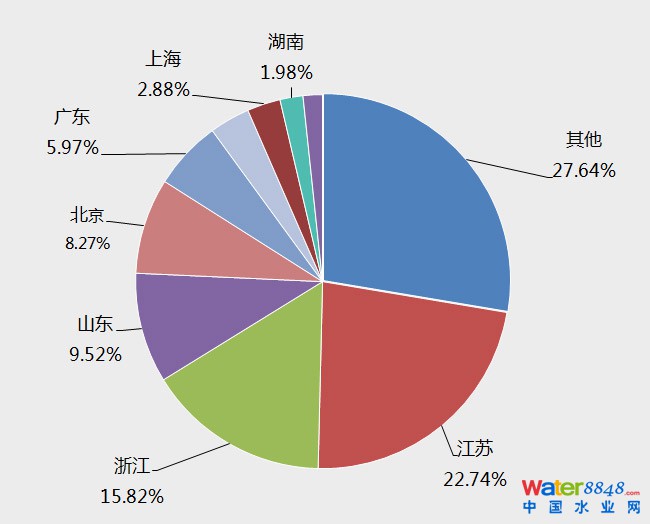 江蘇浙江兩省環(huán)保企業(yè)收入占比分別達22.74%和15.82%
