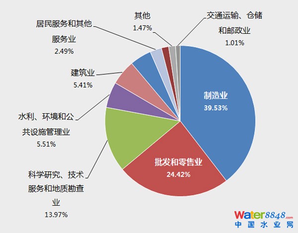 制造與批發(fā)零售企業(yè)數(shù)量占據(jù)環(huán)保產(chǎn)業(yè)鏈半壁江山