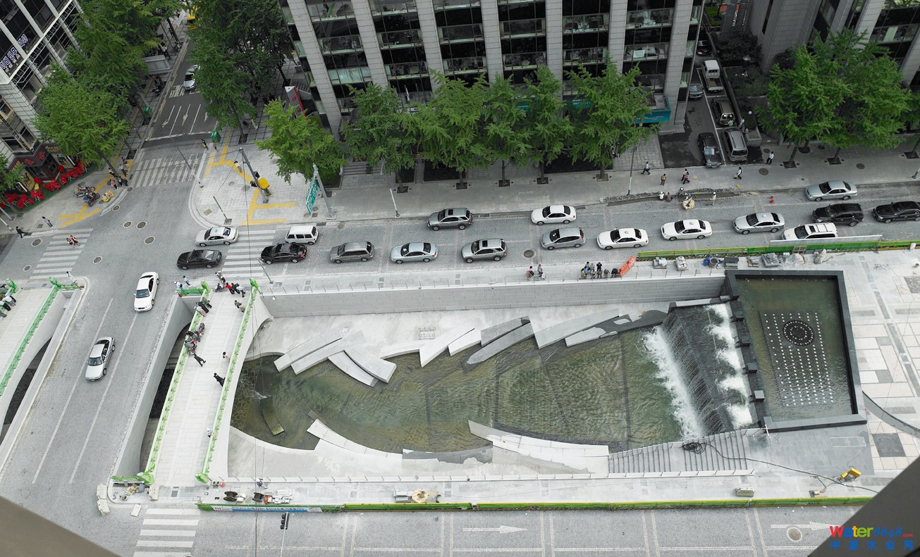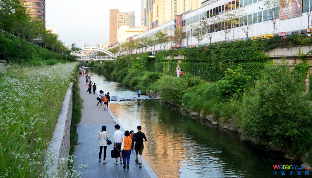 1.修復水體。一是解決水源。由于難以恢復歷史上的天然水系,為保證清溪川不斷流,最終利用經(jīng)處理的漢江水、地下水和雨水、中水向清溪川河道提供水源。二是設置獨立的污水系統(tǒng)。清溪川被覆蓋在地下時承載著排污的功能,為防止復原的水體重新被污染,建設了新的獨立的污水系統(tǒng),對流入清溪川的生活污水進行隔離處理。