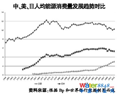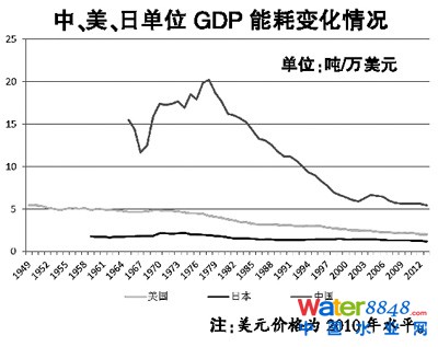 近些年我國單位GDP能耗保持下降趨勢(shì),2013年降至0.81噸標(biāo)準(zhǔn)煤/萬元(2010年價(jià)格)。但下降速度較為緩慢,近十年年均下降1.4%,目前我國單位GDP能耗是世界平均水平的2.5倍,美國的3.3倍,日本的7倍,下降空間仍然很大。