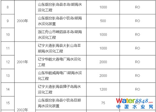 二、全國(guó)沿海已建成海水淡化工程統(tǒng)計(jì)